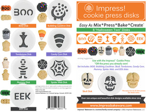 {"id":6831999910064,"title":"Halloween Two 8 Disk Set for Cookie Presses","handle":"halloween-two-8-disk-set-for-cookie-presses","description":"\u003cul\u003e\n\u003cli\u003eCookie Press Disks in 8 fun designs: \u003cspan data-mce-fragment=\"1\"\u003eBoo, Bubbling Cauldron, Skull, Tombstone, Candy Corn, Mummy, Spider Web and Eek.\u003c\/span\u003e\n\u003c\/li\u003e\n\u003cli\u003eMake Halloween shaped cookies. Recipes \u0026amp; tips for pressing, troubleshooting, and decorating included.\u003c\/li\u003e\n\u003cli\u003eMade with a special 3\/32\" thick, highly durable, BPA free PLASTIC material.\u003c\/li\u003e\n\u003cli\u003eMade in the USA\u003c\/li\u003e\n\u003cli\u003eWomen\/Family-Owned Company\u003c\/li\u003e\n\u003cli\u003eNot A Universal Fit.\u003c\/li\u003e\n\u003cli\u003eFor Disk Sizing information please look at the Disk Sizing image to the left or in Presses We Fit located on Header.\u003c\/li\u003e\n\u003cli\u003eTo Enlarge Images just click on image.\u003c\/li\u003e\n\u003cli\u003eIf you have any questions about Disk Sizing, please email us at doughwoes@impressbakeware.com and we can help you.\u003c\/li\u003e\n\u003cli\u003e\u003cstrong\u003eWe are now offering a First Class Option for our Disks and Towel Grips only.\u003c\/strong\u003e\u003c\/li\u003e\n\u003cli\u003e\u003cstrong\u003eCheck out our new shipping information under FAQ's and More then click on New First Class Option For Shipping. \u003c\/strong\u003e\u003c\/li\u003e\n\u003c\/ul\u003e\n\u003cp\u003e \u003c\/p\u003e","published_at":"2021-08-25T06:06:57-06:00","created_at":"2021-08-22T14:31:16-06:00","vendor":"Impress! Bakeware","type":"","tags":[],"price":1695,"price_min":1695,"price_max":1695,"available":true,"price_varies":false,"compare_at_price":null,"compare_at_price_min":0,"compare_at_price_max":0,"compare_at_price_varies":false,"variants":[{"id":40399650488496,"title":"Default Title","option1":"Default Title","option2":null,"option3":null,"sku":"","requires_shipping":true,"taxable":true,"featured_image":null,"available":true,"name":"Halloween Two 8 Disk Set for Cookie Presses","public_title":null,"options":["Default Title"],"price":1695,"weight":85,"compare_at_price":null,"inventory_management":"shopify","barcode":"850007328733","requires_selling_plan":false,"selling_plan_allocations":[]}],"images":["\/\/www.impressbakeware.com\/cdn\/shop\/products\/HALLOW_3.jpg?v=1629742794","\/\/www.impressbakeware.com\/cdn\/shop\/products\/HALLOW_4.jpg?v=1629742803","\/\/www.impressbakeware.com\/cdn\/shop\/products\/8-29-19INTERIORPAGEFINAL.jpg?v=1629742815","\/\/www.impressbakeware.com\/cdn\/shop\/products\/Amazon-DiskSizingUpdateJanuary2021_0aa85b31-df99-4662-8cd9-839da1dc1701.jpg?v=1629742841"],"featured_image":"\/\/www.impressbakeware.com\/cdn\/shop\/products\/HALLOW_3.jpg?v=1629742794","options":["Title"],"media":[{"alt":null,"id":21879064756400,"position":1,"preview_image":{"aspect_ratio":2.886,"height":542,"width":1564,"src":"\/\/www.impressbakeware.com\/cdn\/shop\/products\/HALLOW_3.jpg?v=1629742794"},"aspect_ratio":2.886,"height":542,"media_type":"image","src":"\/\/www.impressbakeware.com\/cdn\/shop\/products\/HALLOW_3.jpg?v=1629742794","width":1564},{"alt":null,"id":21879067148464,"position":2,"preview_image":{"aspect_ratio":1.318,"height":2462,"width":3245,"src":"\/\/www.impressbakeware.com\/cdn\/shop\/products\/HALLOW_4.jpg?v=1629742803"},"aspect_ratio":1.318,"height":2462,"media_type":"image","src":"\/\/www.impressbakeware.com\/cdn\/shop\/products\/HALLOW_4.jpg?v=1629742803","width":3245},{"alt":null,"id":21879068655792,"position":3,"preview_image":{"aspect_ratio":1.343,"height":2406,"width":3231,"src":"\/\/www.impressbakeware.com\/cdn\/shop\/products\/8-29-19INTERIORPAGEFINAL.jpg?v=1629742815"},"aspect_ratio":1.343,"height":2406,"media_type":"image","src":"\/\/www.impressbakeware.com\/cdn\/shop\/products\/8-29-19INTERIORPAGEFINAL.jpg?v=1629742815","width":3231},{"alt":null,"id":21879073243312,"position":4,"preview_image":{"aspect_ratio":1.322,"height":2468,"width":3263,"src":"\/\/www.impressbakeware.com\/cdn\/shop\/products\/Amazon-DiskSizingUpdateJanuary2021_0aa85b31-df99-4662-8cd9-839da1dc1701.jpg?v=1629742841"},"aspect_ratio":1.322,"height":2468,"media_type":"image","src":"\/\/www.impressbakeware.com\/cdn\/shop\/products\/Amazon-DiskSizingUpdateJanuary2021_0aa85b31-df99-4662-8cd9-839da1dc1701.jpg?v=1629742841","width":3263}],"requires_selling_plan":false,"selling_plan_groups":[],"content":"\u003cul\u003e\n\u003cli\u003eCookie Press Disks in 8 fun designs: \u003cspan data-mce-fragment=\"1\"\u003eBoo, Bubbling Cauldron, Skull, Tombstone, Candy Corn, Mummy, Spider Web and Eek.\u003c\/span\u003e\n\u003c\/li\u003e\n\u003cli\u003eMake Halloween shaped cookies. Recipes \u0026amp; tips for pressing, troubleshooting, and decorating included.\u003c\/li\u003e\n\u003cli\u003eMade with a special 3\/32\" thick, highly durable, BPA free PLASTIC material.\u003c\/li\u003e\n\u003cli\u003eMade in the USA\u003c\/li\u003e\n\u003cli\u003eWomen\/Family-Owned Company\u003c\/li\u003e\n\u003cli\u003eNot A Universal Fit.\u003c\/li\u003e\n\u003cli\u003eFor Disk Sizing information please look at the Disk Sizing image to the left or in Presses We Fit located on Header.\u003c\/li\u003e\n\u003cli\u003eTo Enlarge Images just click on image.\u003c\/li\u003e\n\u003cli\u003eIf you have any questions about Disk Sizing, please email us at doughwoes@impressbakeware.com and we can help you.\u003c\/li\u003e\n\u003cli\u003e\u003cstrong\u003eWe are now offering a First Class Option for our Disks and Towel Grips only.\u003c\/strong\u003e\u003c\/li\u003e\n\u003cli\u003e\u003cstrong\u003eCheck out our new shipping information under FAQ's and More then click on New First Class Option For Shipping. \u003c\/strong\u003e\u003c\/li\u003e\n\u003c\/ul\u003e\n\u003cp\u003e \u003c\/p\u003e"}