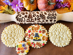 {"id":7698702237872,"title":"Thanksgiving Large Designs Embossed Rolling Pin","handle":"thanksgiving-large-designs-embossed-rolling-pin","description":"\u003cul\u003e\n\u003cli\u003eWe are excited to announce our newest product line! Embossed rolling pins!\u003c\/li\u003e\n\u003cli\u003e100% natural Beech wood Rolling Pin.\u003c\/li\u003e\n\u003cli\u003eOur rolling pins are laser engraved using a high-resolution laser machine. We have engraved our patterns deep enough to emboss the best quality patterns.\u003c\/li\u003e\n\u003cli\u003e\u003cem\u003e\u003cstrong\u003eThese designs are all our own, drawn and designed by Susie, and copyrighted. You won't see another company selling these patterns.\u003c\/strong\u003e\u003c\/em\u003e\u003c\/li\u003e\n\u003cli\u003eRolling pin handles are non-turning for added stability while rolling out the design. We chose a medium length for stability and ease of rolling. \u003c\/li\u003e\n\u003cli\u003eUse our embossed rolling pins with pastry, fondant, cookie dough and so much more. Also perfect for clay and soap.\u003c\/li\u003e\n\u003cli\u003eAll of our rolling pins are food grade approved for contact with food. \u003c\/li\u003e\n\u003cli\u003eRolling pins do not come oiled. \u003c\/li\u003e\n\u003cli\u003eBefore first use, thoroughly clean the rolling pin by handwashing with warm soap and water. Allow to dry completely. Apply vegetable oil or food grade mineral oil for maintenance before the first use and apply additional oil after every cleaning to properly season your rolling pin. In order to prevent the rolling pin from deforming and cracking, please do not expose it to the sun, submerge in water or a prolonged soaking in water. Do not put in dishwasher. Hand wash only.\u003c\/li\u003e\n\u003cli\u003eTotal length including handles is 13 inches long and Barrel (embossed pattern section) is 5 1\/2 inches long. Diameter of barrel is approximately 2 inches.\u003c\/li\u003e\n\u003cli\u003eWith your rolling pin will include a guide with recipes, troubleshooting information, tips and care instructions.\u003c\/li\u003e\n\u003c\/ul\u003e","published_at":"2024-08-07T13:10:34-06:00","created_at":"2024-08-06T14:04:47-06:00","vendor":"Impress! Bakeware","type":"","tags":[],"price":1695,"price_min":1695,"price_max":1695,"available":true,"price_varies":false,"compare_at_price":null,"compare_at_price_min":0,"compare_at_price_max":0,"compare_at_price_varies":false,"variants":[{"id":43824858464432,"title":"Default Title","option1":"Default Title","option2":null,"option3":null,"sku":null,"requires_shipping":true,"taxable":true,"featured_image":null,"available":true,"name":"Thanksgiving Large Designs Embossed Rolling Pin","public_title":null,"options":["Default Title"],"price":1695,"weight":544,"compare_at_price":null,"inventory_management":"shopify","barcode":null,"requires_selling_plan":false,"selling_plan_allocations":[]}],"images":["\/\/www.impressbakeware.com\/cdn\/shop\/files\/ThanksgivingLargeDesignsEmbossedRollingPinwithcookiespaintedwithlusterdust_plain_2024Impress_a.jpg?v=1722985283","\/\/www.impressbakeware.com\/cdn\/shop\/files\/Thanksgiving_Large_Designs_Embossed_Rolling_Pin_and_rolled_cookie_dough_2024_Impress_Bakeware_LLC_b.jpg?v=1722985304","\/\/www.impressbakeware.com\/cdn\/shop\/files\/Thanksgiving_Large_Designs_Embossed_Rolling_Pin_with_cookies_painted_with_luster_dust_plain_2024_Impress_b.jpg?v=1722985320","\/\/www.impressbakeware.com\/cdn\/shop\/files\/Thanksgiving_Large_Designs_Embossed_Rolling_Pin_and_rolled_cookie_dough_2024_Impress_Bakeware_LLC_a.jpg?v=1722985901"],"featured_image":"\/\/www.impressbakeware.com\/cdn\/shop\/files\/ThanksgivingLargeDesignsEmbossedRollingPinwithcookiespaintedwithlusterdust_plain_2024Impress_a.jpg?v=1722985283","options":["Title"],"media":[{"alt":null,"id":26898635194544,"position":1,"preview_image":{"aspect_ratio":1.333,"height":3000,"width":4000,"src":"\/\/www.impressbakeware.com\/cdn\/shop\/files\/ThanksgivingLargeDesignsEmbossedRollingPinwithcookiespaintedwithlusterdust_plain_2024Impress_a.jpg?v=1722985283"},"aspect_ratio":1.333,"height":3000,"media_type":"image","src":"\/\/www.impressbakeware.com\/cdn\/shop\/files\/ThanksgivingLargeDesignsEmbossedRollingPinwithcookiespaintedwithlusterdust_plain_2024Impress_a.jpg?v=1722985283","width":4000},{"alt":null,"id":26898636439728,"position":2,"preview_image":{"aspect_ratio":0.75,"height":4000,"width":3000,"src":"\/\/www.impressbakeware.com\/cdn\/shop\/files\/Thanksgiving_Large_Designs_Embossed_Rolling_Pin_and_rolled_cookie_dough_2024_Impress_Bakeware_LLC_b.jpg?v=1722985304"},"aspect_ratio":0.75,"height":4000,"media_type":"image","src":"\/\/www.impressbakeware.com\/cdn\/shop\/files\/Thanksgiving_Large_Designs_Embossed_Rolling_Pin_and_rolled_cookie_dough_2024_Impress_Bakeware_LLC_b.jpg?v=1722985304","width":3000},{"alt":null,"id":26898637619376,"position":3,"preview_image":{"aspect_ratio":1.333,"height":2690,"width":3587,"src":"\/\/www.impressbakeware.com\/cdn\/shop\/files\/Thanksgiving_Large_Designs_Embossed_Rolling_Pin_with_cookies_painted_with_luster_dust_plain_2024_Impress_b.jpg?v=1722985320"},"aspect_ratio":1.333,"height":2690,"media_type":"image","src":"\/\/www.impressbakeware.com\/cdn\/shop\/files\/Thanksgiving_Large_Designs_Embossed_Rolling_Pin_with_cookies_painted_with_luster_dust_plain_2024_Impress_b.jpg?v=1722985320","width":3587},{"alt":null,"id":26898827116720,"position":4,"preview_image":{"aspect_ratio":0.873,"height":3435,"width":3000,"src":"\/\/www.impressbakeware.com\/cdn\/shop\/files\/Thanksgiving_Large_Designs_Embossed_Rolling_Pin_and_rolled_cookie_dough_2024_Impress_Bakeware_LLC_a.jpg?v=1722985901"},"aspect_ratio":0.873,"height":3435,"media_type":"image","src":"\/\/www.impressbakeware.com\/cdn\/shop\/files\/Thanksgiving_Large_Designs_Embossed_Rolling_Pin_and_rolled_cookie_dough_2024_Impress_Bakeware_LLC_a.jpg?v=1722985901","width":3000},{"alt":null,"id":26899383550128,"position":5,"preview_image":{"aspect_ratio":1.778,"height":1080,"width":1920,"src":