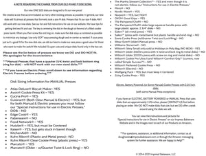 {"id":6956693323952,"title":"12 Disk Shapes from our Cookie Press Box (Disks Only - Cookie Press NOT Included!)","handle":"12-shape-disks-only","description":"\u003cp\u003eWe are thrilled to offer you the 12 Disk Shapes from our Cookie Press Box. (Disks Only - Press NOT Included!)\u003c\/p\u003e\n\u003cul\u003e\n\u003cli\u003e12 Shaped Disks Only\u003c\/li\u003e\n\u003cli\u003eDisk designs include: Kitty Cat, Serrated Heart, Double Daisy, Bluebird\/Songbird, Teardrop Leaf, Dachshund\/Small Dog, Gecko, Sunflower, Fancy Christmas Tree, Snowflake 13, Delicate Butterfly and Sitting Bunny.\u003c\/li\u003e\n\u003cli\u003eMake unique shaped cookies. Recipes \u0026amp; tips for pressing, troubleshooting, and decorating included. \u003c\/li\u003e\n\u003cli\u003eDisks made with a special 3\/32\" thick, highly durable, BPA free PLASTIC material.\u003c\/li\u003e\n\u003cli\u003eMade in the USA\u003c\/li\u003e\n\u003cli\u003eWomen\/Family-Owned Company\u003c\/li\u003e\n\u003cli\u003eDisks Are Not A Universal Fit.\u003c\/li\u003e\n\u003cli\u003eFor Disk Sizing information please look at the Disk Sizing image to the left or in Presses We Fit located on Header.\u003c\/li\u003e\n\u003cli\u003eTo Enlarge Images just click on image.\u003c\/li\u003e\n\u003cli\u003eIf you have any questions about Disk Sizing, please email us at doughwoes@impressbakeware.com and we can help you.\u003c\/li\u003e\n\u003c\/ul\u003e\n\u003cp\u003e \u003c\/p\u003e","published_at":"2021-11-03T00:00:03-06:00","created_at":"2021-10-27T10:17:23-06:00","vendor":"Impress! Bakeware","type":"","tags":[],"price":2195,"price_min":2195,"price_max":2195,"available":true,"price_varies":false,"compare_at_price":null,"compare_at_price_min":0,"compare_at_price_max":0,"compare_at_price_varies":false,"variants":[{"id":40890451460272,"title":"Default Title","option1":"Default Title","option2":null,"option3":null,"sku":"","requires_shipping":true,"taxable":true,"featured_image":null,"available":true,"name":"12 Disk Shapes from our Cookie Press Box (Disks Only - Cookie Press NOT Included!)","public_title":null,"options":["Default Title"],"price":2195,"weight":96,"compare_at_price":null,"inventory_management":"shopify","barcode":"850007328986","requires_selling_plan":false,"selling_plan_allocations":[]}],"images":["\/\/www.impressbakeware.com\/cdn\/shop\/products\/Box_Set_Sampler_Cookie_Press_Disk_Set_spritz_2019_Impress_Bakeware_LLC_H_8b1c2734-3a8f-4a8e-b228-4cefbb4c41be.jpg?v=1635351455","\/\/www.impressbakeware.com\/cdn\/shop\/products\/Box_Set_Sampler_Cookie_Press_Disk_Set_plain_spritz_2019_Impress_Bakeware_LLC_09f1a991-13b3-489d-bdb5-3ba976521a8a.jpg?v=1635351455","\/\/www.impressbakeware.com\/cdn\/shop\/products\/BOXSETFRONTOFPACKAGEMERGEDACtripledR_nostarNEW2021Registeredtrademarkusawomenowned_29d1619b-1987-4d4e-beb4-ad24f721d34c.jpg?v=1635351455","\/\/www.impressbakeware.com\/cdn\/shop\/products\/BOXSETSIDE2INTERIOROFPACKAGEMERGEDACtripledR_nostarNEW2021Registeredtrademarkusawomenowned_48291a90-ac7f-4ddc-b63b-ee0a2dac18f9.jpg?v=1635351455","\/\/www.impressbakeware.com\/cdn\/shop\/products\/Amazon-DiskSizingUpdateJanuary2021_32064839-d8b6-47bc-937d-ee07b74913b9.jpg?v=1635351455","\/\/www.impressbakeware.com\/cdn\/shop\/products\/Impress_Bakewarecookiesmadewith12Disks_2019ImpressBakeware_LLC.jpg?v=1635355109"],"featured_image":"\/\/www.impressbakeware.com\/cdn\/shop\/products\/Box_Set_Sampler_Cookie_Press_Disk_Set_spritz_2019_Impress_Bakeware_LLC_H_8b1c2734-3a8f-4a8e-b228-4cefbb4c41be.jpg?v=1635351455","options":["Title"],"media":[{"alt":null,"id":22676411449520,"position":1,"preview_image":{"aspect_ratio":1.253,"height":1234,"width":1546,"src":"\/\/www.impressbakeware.com\/cdn\/shop\/products\/Box_Set_Sampler_Cookie_Press_Disk_Set_spritz_2019_Impress_Bakeware_LLC_H_8b1c2734-3a8f-4a8e-b228-4cefbb4c41be.jpg?v=1635351455"},"aspect_ratio":1.253,"height":1234,"media_type":"image","src":"\/\/www.impressbakeware.com\/cdn\/shop\/products\/Box_Set_Sampler_Cookie_Press_Disk_Set_spritz_2019_Impress_Bakeware_LLC_H_8b1c2734-3a8f-4a8e-b228-4cefbb4c41be.jpg?v=1635351455","width":1546},{"alt":null,"id":22676411482288,"position":2,"preview_image":{"aspect_ratio":1.203,"height":997,"width":1199,"src":"\/\/www.impressbakeware.com\/cdn\/shop\/products\/Box_Set_Sampler_Cookie_Press_Disk_Set_plain_spritz_2019_Impress_Bakeware_LLC_09f1a991-13b3-489d-bdb5-3ba976521a8a.jpg?v=1635351455"},"aspect_ratio":1.203,"height":997,"media_type":"image","src":"\/\/www.impressbakeware.com\/cdn\/shop\/products\/Box_Set_Sampler_Cookie_Press_Disk_Set_plain_spritz_2019_Impress_Bakeware_LLC_09f1a991-13b3-489d-bdb5-3ba976521a8a.jpg?v=1635351455","width":1199},{"alt":null,"id":22676411547824,"position":3,"preview_image":{"aspect_ratio":1.281,"height":2540,"width":3255,"src":"\/\/www.impressbakeware.com\/cdn\/shop\/products\/BOXSETFRONTOFPACKAGEMERGEDACtripledR_nostarNEW2021Registeredtrademarkusawomenowned_29d1619b-1987-4d4e-beb4-ad24f721d34c.jpg?v=1635351455"},"aspect_ratio":1.281,"height":2540,"media_type":"image","src":"\/\/www.impressbakeware.com\/cdn\/shop\/products\/BOXSETFRONTOFPACKAGEMERGEDACtripledR_nostarNEW2021Registeredtrademarkusawomenowned_29d1619b-1987-4d4e-beb4-ad24f721d34c.jpg?v=1635351455","width":3255},{"alt":null,"id":22676411613360,"position":4,"preview_image":{"aspect_ratio":1.283,"height":2529,"width":3244,"src":"\/\/www.impressbakeware.com\/cdn\/shop\/products\/BOXSETSIDE2INTERIOROFPACKAGEMERGEDACtripledR_nostarNEW2021Registeredtrademarkusawomenowned_48291a90-ac7f-4ddc-b63b-ee0a2dac18f9.jpg?v=1635351455"},"aspect_ratio":1.283,"height":2529,"media_type":"image","src":"\/\/www.impressbakeware.com\/cdn\/shop\/products\/BOXSETSIDE2INTERIOROFPACKAGEMERGEDACtripledR_nostarNEW2021Registeredtrademarkusawomenowned_48291a90-ac7f-4ddc-b63b-ee0a2dac18f9.jpg?v=1635351455","width":3244},{"alt":null,"id":22676411678896,"position":5,"preview_image":{"aspect_ratio":1.322,"height":2468,"width":3263,"src":"\/\/www.impressbakeware.com\/cdn\/shop\/products\/Amazon-DiskSizingUpdateJanuary2